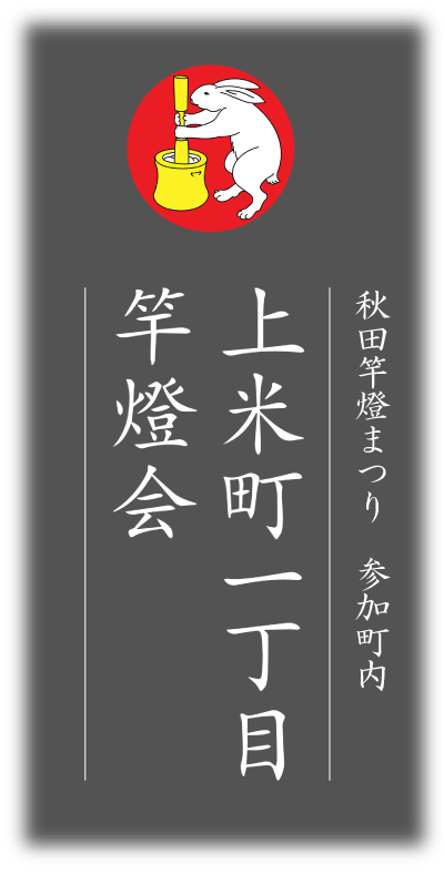 「うさぎの餅つき」の町紋を大切にし、伝統を守りつつ、新しいことを取り入れながら活動しております。また、県内外で行われる竿燈のPR活動や、社会貢献活動にも積極的に取り組んでおります。