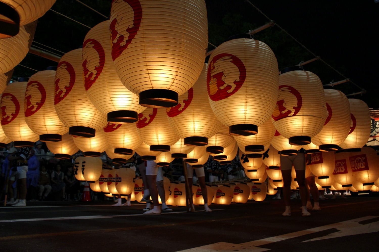 竹竿に提灯を吊るした重さ50kgにも及ぶ「竿燈」を、額や腰などの体1点に乗せてバランスを取り、妙技と呼ばれるダイナミックな技を披露します。 約280本の竿燈、約一万個の提灯が夜の大通りを埋めつくす様子は、「天の川が地上に舞い降りる」と表現されるように、まさに圧巻の光景です。